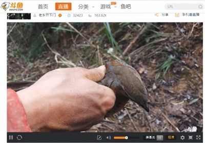 斗鱼直播平台上,“老乡开下门”捕获野鸟。本组图片/网络截图