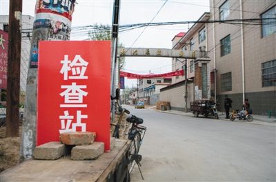 2017年4月3日,河北安新县北六村,进村路口设有检查站,有村民在路口执勤,不让与建筑有关的车辆进村。新京报记者 李强 摄