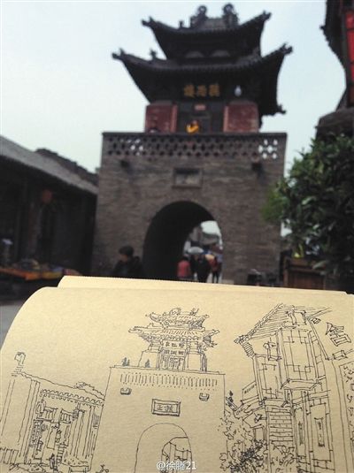 徐腾2014年在平遥古城的手绘。