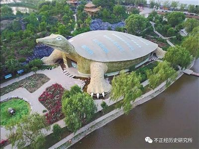 公号里陆续推送了各种稀奇古怪的建筑。比如河北白洋淀荷花大观园里的大鳖馆、辽宁某村的“干”字文化广场,还有新疆特克斯县城八卦公园的八卦摩天轮。徐腾把这称为“不正经历史研究所出品的大型魔幻现实主义系列寻访计划”。