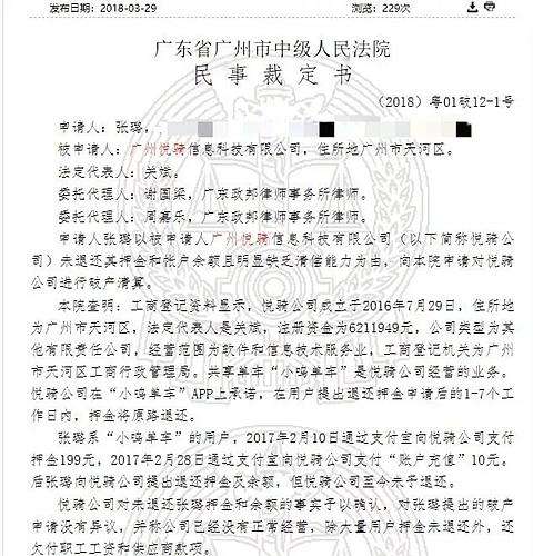 该用户在今年3月以悦骑公司未退还其押金和帐户余额且明显缺乏清偿能力为由,向法院申请对悦骑公司进行破产清算。