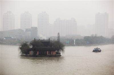一艘货船驶过惠山浜口的黄埠墩。这里曾是无锡古运河中心,清康熙和乾隆南巡,每次路经此处都要到墩上停留观赏。