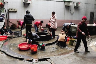 无锡新光村上浦巷,一群居民取用井水洗衣洗菜。