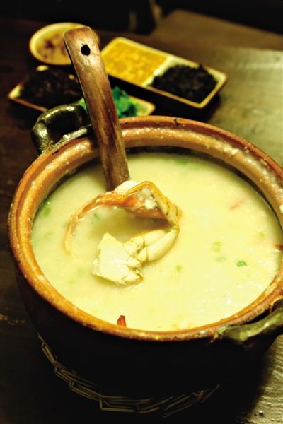 另外一家名声在外的潮汕砂锅粥店在日坛,叫潮香洲。潮汕菜本身是亲民体贴、细水长流的。一般来说,砂锅粥只算海鲜的钱,不算粥钱,看到这里的菜单上价钱挺贵,其实不算贵。一般人会点这里的虾蟹粥,最有特色的粥品,鲜美无比,里面加入一点鸡汤和潮州香芋。我偏爱这里的田鸡粥。大冷天的,几个人聚在这偏僻的角落里,喝粥,聊天,搭配着卤水拼盘,油炸花生米,喝一点酒。那种感觉是“绿蚁新醅酒,红泥小火炉”。
