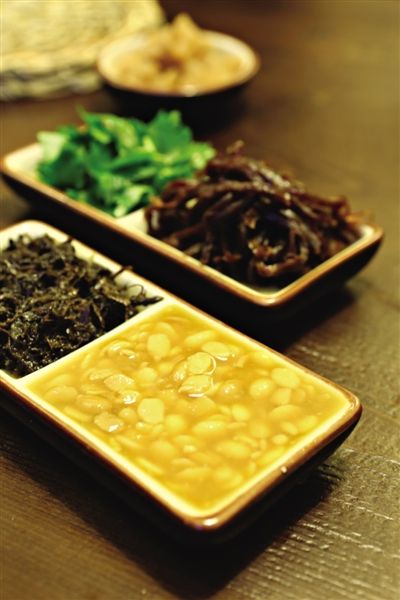 其实我对这种排长队的小馆不太感冒,生意火爆,容易忙中出乱,萝卜快了不洗泥,如果再有点不思进取,菜品可想而知。这家砂锅粥倒算是例外,粥不像炒菜,它更容易保证质量,无非是料好,锅好,火候足。这里的砂锅不是北京市面上常见的砂锅,都是从南方一摞摞发过来,是比较粗糙、沙孔比较大的那种。这种锅炖出来更够味。招牌是干贝虾蟹粥,米粒都已经软烂成泥,味道混合入干贝、虾、蟹的鲜香,的确是好滋味。如果是一个大冷天,一碗粥下肚,那是一种尘世的温暖。
