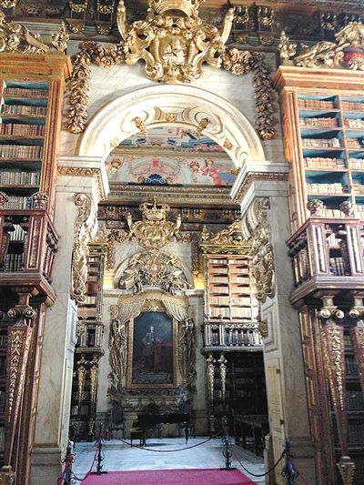科英布拉大学 老图书馆金碧辉煌,很多地方都是用纯金金箔装饰。据说,图书馆之所以如此奢华,是因为在1910年之前,全国只有这一所专业丰富的大学,很多人会将华丽的物品和装潢放在大学里展示。图书馆共分三层,游客可以参观的是藏书层和第三层(学生关禁闭的地方),中间一层是工作人员工作和珍贵古籍保存的地方。三十万册图书被整齐放置在上好的木头书架中,每个书架均有统一编码,以便学生在新图书馆的电脑系统中查询并在老图书馆中借阅。不过,对哈利·波特迷来说,科英布拉大学最厉害的是:巫师们的校服原型就是出自这所大学。
