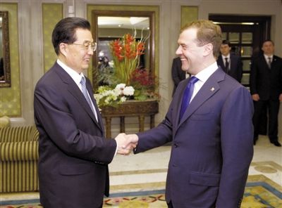 中俄两国元首就朝鲜半岛局势交换了意见。胡锦涛指出,中俄在维护半岛和地区和平稳定方面有共同立场。前一段,双方一直就此保持密切沟通协调,积极作有关各方工作。当前,半岛形势十分复杂敏感,中方愿同俄方继续密切配合,敦促有关各方保持冷静克制,推动各方通过对话接触缓和和改善关系,维护半岛和平稳定大局。
