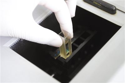 图4:检测人员通过专门仪器检测浓缩过的萃取液。