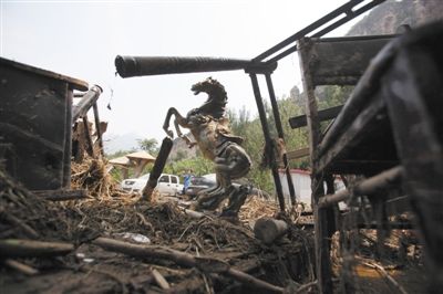 昨日,房山十渡景区,马雕塑被放在一堆杂物里。