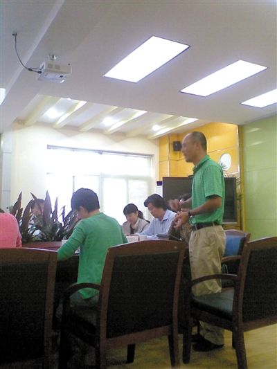 昨日,校领导和家长开会讨论解决方法,李明的父亲站起来发言。新京报记者 展明辉 摄