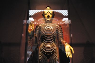 故宫的宗教文物有四万两千件,其中藏传佛教占到相当比例。中正殿昨天还举行了两个展览,分别展示了故宫收藏的佛像和唐卡。在展出的佛像中,还有几座为当年过火的佛像。