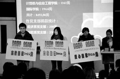 由北京农学院经管学院学生会发起,北京交通大学、北京工商大学、对外贸易大学、北京服装学院以及北京联合大学参与的为“西单奶奶”募捐公益活动,也于前日下午结束。