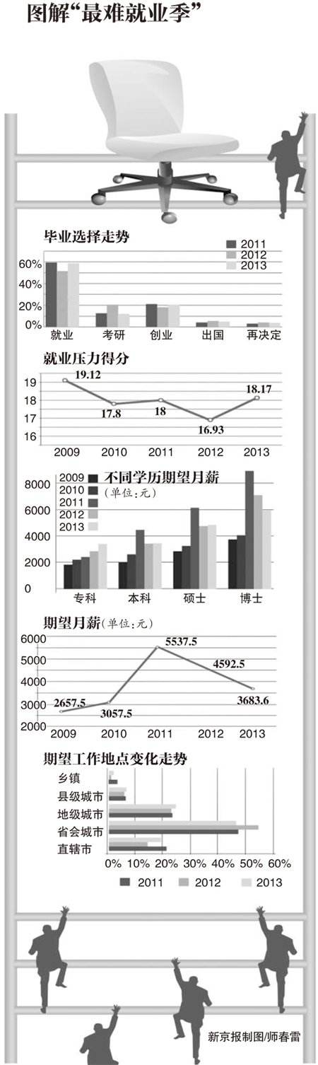 2013年大学生就业压力调查报告发布,就业压力近4年来最大