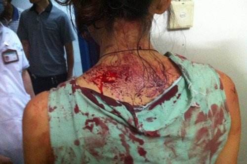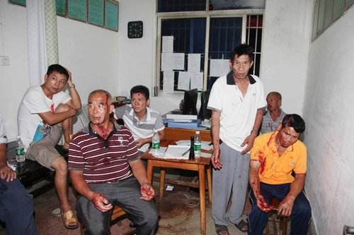 2013年7月18日凌晨,湖南,图为抢尸过程中被打的伤者。 东方IC