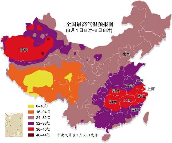 气象专家预计,8月1日后,随着副高的再次加强,安徽全省最高气温将进一步上升,可达37℃~39℃,局部地区超过40℃。