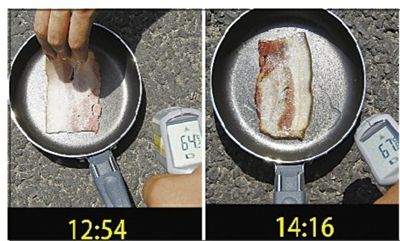 【上海 “铁板培根”】7月30日12时54分,记者往平底锅中放置了一片生培根,并将平底锅放置在上海徐家汇商圈的马路上。生培根片煎至八分熟一共用时约80分钟,整个过程中地面温度一直高于60℃。当日,据上海市中心气象台消息,上海最高气温达39℃。据新华社