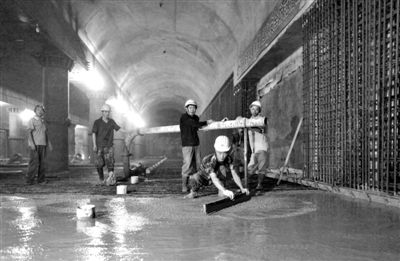 昨日,地铁14号线大望路站施工现场,工作人员在换乘大厅层施工。新京报记者 薛珺 摄