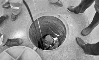 昨日上午8时40分许,在湖南浏阳工业园东惠小区永龙路进行人行道铺装改造施工时,施工方湖南永鑫建设有限公司现场员工因未及时将井盖进行复位,导致在此玩耍的北盛镇环园村一名5岁小孩不慎落入下水管道。目前搜救工作仍在进行中。新华社记者 赵众志 摄