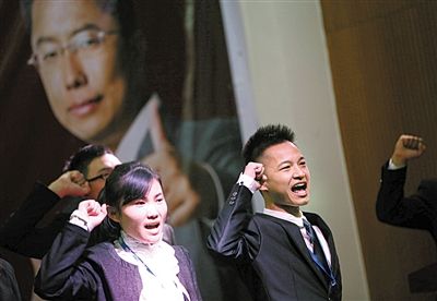李阳演讲班的老师们,课前他们以宣誓的方法鼓励学员。