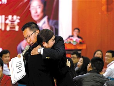 演讲课上,李阳与每一位参加课程的学员拥抱。