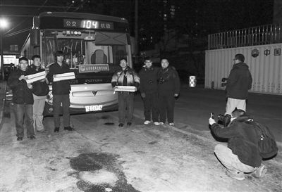 半小时后,5名公交司机被送到车队停车场,他们随即将最后的5辆“104快”开走。