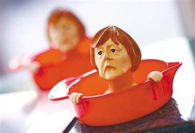 竞选集会现场上“实用”的默克尔榨汁机。