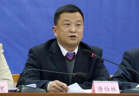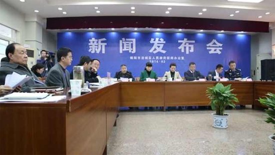涪城区监察局局长区联合调查组组长唐仕林在发布调查报告。 新京报记者 尹亚飞 摄