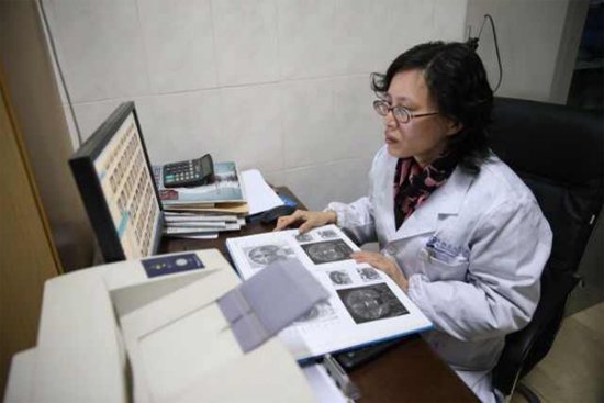 2月21日,兰越峰已离开走廊,坐在医院一楼的CT医生值班室内。 新京报记者 尹亚飞 摄