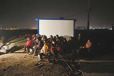 3月3日,有村民看见施工队在圈地里建办公房,“地可能被卖了”。在这种怀疑下,3月5日,村民们在开发商办公房门口支起了帐篷,乡里乡亲选人日夜轮流值守。村民约定,一旦出危险,鸣锣为号。