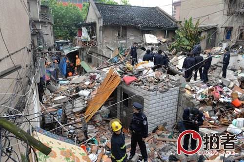 发生爆炸倒塌的是上海市虹口区新港路242号,这里是一栋老式居民楼,砖木结构,三层建筑,旁边另一栋一层建筑,爆炸发生后,这里成为一片废墟,三层居民楼完全倒塌,旁边的一层建筑也遭损毁。