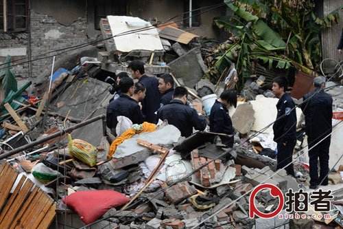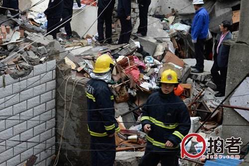 一名居住在倒塌居民楼附近的居民称,事发时,他听到一声巨响,周围烟尘四起,他家的窗玻璃也被震碎,周围房屋也有不同程度损伤,“那栋三层居民楼是一瞬间倒塌的。”