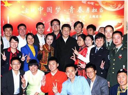 2013年5月4日,在中国航天科技集团公司中国空间技术研究院,习近平与各界优秀青年代表合影留念。