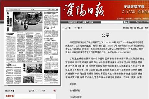 新京报快讯(记者 杨锋)近日,全国各大媒体记者的记者证正处于换发申领阶段。今日(9月11日),腾讯微博网友@路边社资阳分社称,四川省简阳市简城街道党工委书记雷启锋的名字,出现在《资阳日报》换发新闻记者证人员公示名单中。