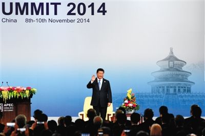 据新华社电 2014年亚太经合组织(APEC)工商领导人峰会9日在北京国家会议中心举行,国家主席习近平出席开幕式并发表题为《谋求持久发展 共筑亚太梦想》的主旨演讲。