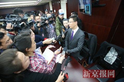 宣判后原告琼瑶委托代理人接受记者采访。新京报记者 王贵彬 摄