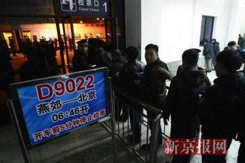 燕郊站乘客检票。新京报记者 王嘉宁 摄