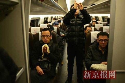 列车开动后记者发现有不少座位是空的。据悉,动车组列车在开车前五分钟停止检票,有乘客因此错过时间没能上车。铁路部门再次提醒乘客,燕郊到北京的首班车发车时间为早上6:46。列车7:16准时抵达北京站后乘客出站前往2号线北京站乘地铁换乘。