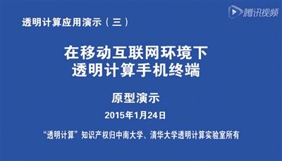 此前,张尧学在接受媒体采访时公布了“透明计算”成果演示视频,视频中注明“‘透明计算’知识产权归中南大学、清华大学透明计算实验室所有。”视频截图