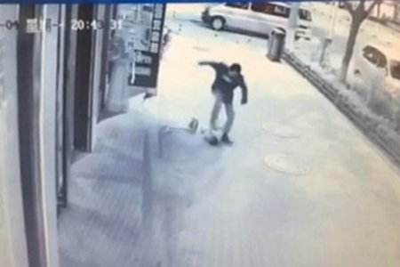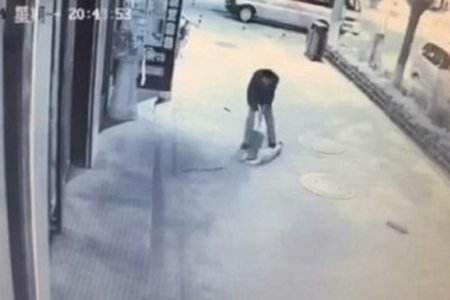 在这段1分44秒长的视频中,一小男孩先是在一家店门口扫地,11秒时,一男子突然向其冲去飞踹一脚将男孩踢倒在地,并不断跳起来踩踏其头部等身体部位,之后拿起扫把和畚箕砸小孩头部。整个殴打过程持续约有37秒时间。