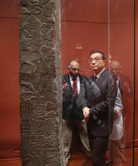 当地时间23日上午,李克强总理在秘鲁出席中拉文明互鉴系列活动,与两国文化界人士一同参观查文文化、印加文化文物和中华文明起源图片展。总理说,这些文物和图片蕴藏着两国的文明基因和独特文化密码。了解这些既往历史,是开启今天两国人民心灵的一把钥匙。(图片来自中国政府网)
