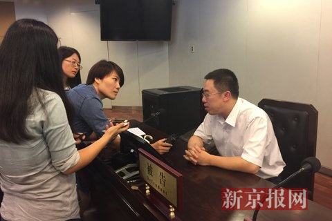 被告新画面影业方接受媒体采访。新京报记者 林野 摄