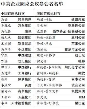 根据保尔森基金会提供的信息,参加座谈会的企业涉及多个行业,中方包括阿里巴巴、腾讯、联想、中国银行、海尔集团等。美方包括亚马逊、思科、苹果、波音、百事可乐等公司