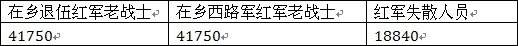 在乡退伍红军老战士、在乡西路军红军老战士、红军失散人员生活补助标准表