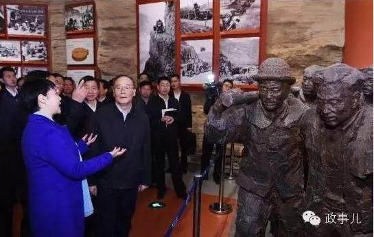 王岐山在调研期间曾和讲解员一起咏唱自己“印象深刻”的纪录片《红旗渠》主题歌《定叫山河换新装》。