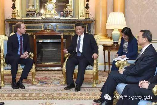 图:10月20日,习近平在伦敦会见英国威廉王子,习近平左侧女性为翻译周宇。