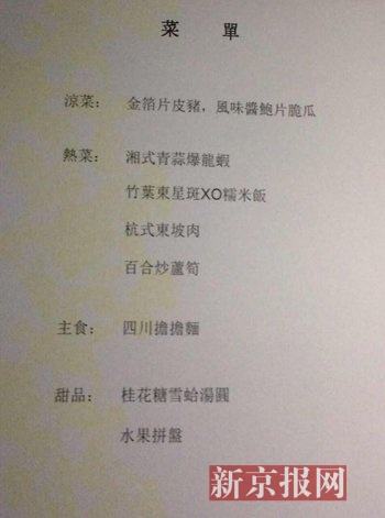 “习马会”晚宴菜单。新京报记者 薛珺 摄