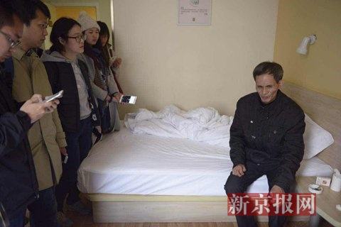 林父在下榻的宾馆接受采访。新京报记者 王嘉宁 摄