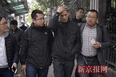 上海二中院外,林森浩父亲跟儿子见面后,接受媒体采访。新京报记者 王嘉宁 摄