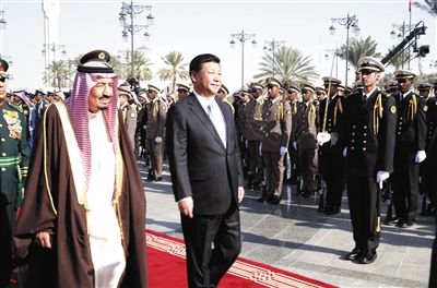 当地时间1月19日,国家主席习近平出席了沙特阿拉伯国王萨勒曼在王宫办公厅广场举行的隆重欢迎仪式。