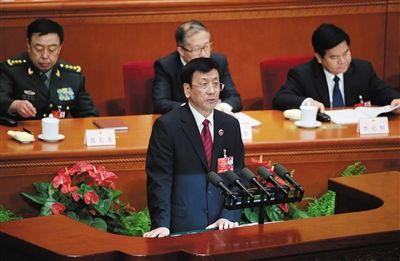 昨日,十二届全国人大四次会议在北京人民大会堂举行第三次全体会议。最高人民检察院检察长曹建明作最高检工作报告。新京报首席记者 陈杰 摄